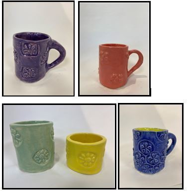 Students in Ms. Plude’s Pottery class have just finished their textured vessel projects. The textures you see on the handbuilt mugs and cylinders were created from stamps the students designed and constructed during the last marking period.