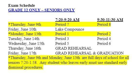 Graduating seniors with a second semester average of B+ or above and no cuts in that course are exempt from taking the final exam in June.