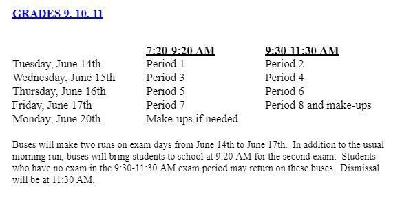 The last full day of school will be Monday, June 13th, 2022 for high school students only. The cafeteria will operate on a regular schedule through Monday, June 13th, 2022.